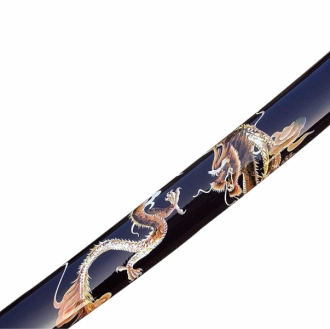 Pochwa drewniana, wykończona w połyskiem  czarnej laki. Ozdobą katany jest charakterystyczny, wyrazisty ( w jasnych kolorach ) motyw smoka Tsuba metalowa, grawerowana. Kashira i fuchi wykonane w tym samym stylu co tsuba