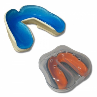 Dwuwarstwowy ochraniacz zakładany na górną szczękę wykonany z materiału termoplastycznego przeznaczony dla dzieci.