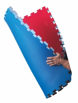 Dzięki temu, że są to maty dwustronne, dostępne w kolorze czerwonym z jednej strony, a niebieskim z drugiej strony możliwe jest tworzenie większych powierzchni mat z wydzielonymi obszarami innego koloru (np. pole walki i pole bezpieczeństwa).