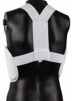 Lekki, przetestowany, zapewniający odpowiednią ochronę przed uderzeniami. Regulowane rzepy zapewniają dopasowanie do tulowia.