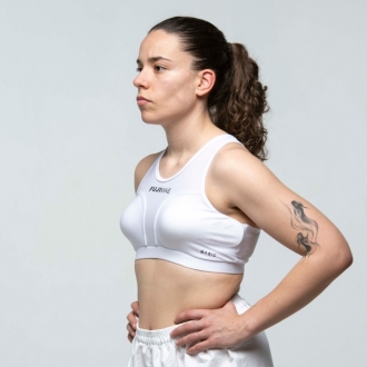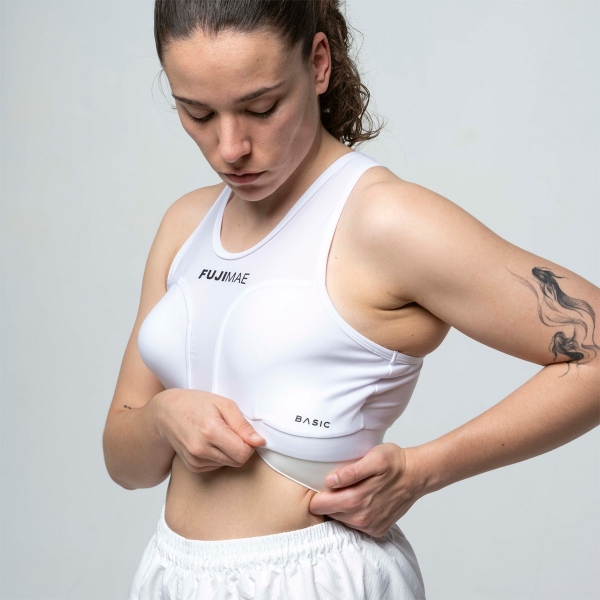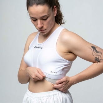 Model ochraniacza na biust firmy Fujimae z dwoma miseczkami. dostepny z koszulką (topem) w kolorze białym